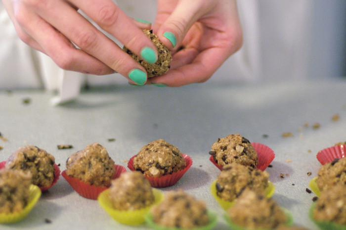 - Oblikujte smjesu u male kuglice i stavite ih u papirnate “šeširiće”.